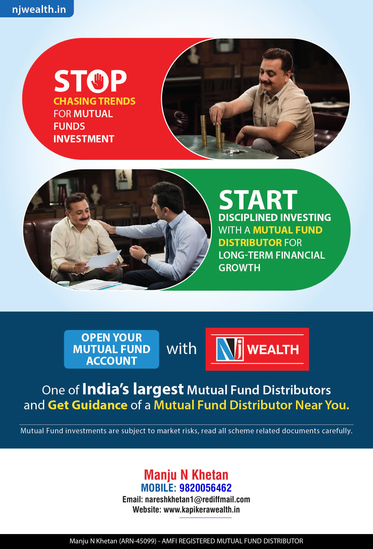 We offer our services through personal guidance with each of our clients after understanding their investment needs. Our approach is to enable our clients to understand their investments, know investment products and make proper progress toward achieving their financial needs in life.